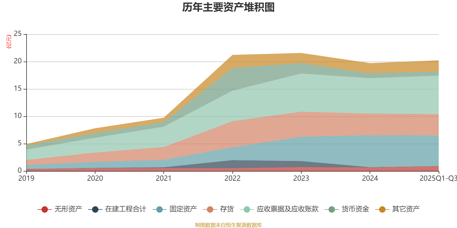 资产重大变化方面,截至2025年三季度末,公司应收票据及应收账款较上年末增加8.96%,占公司总资产比重上升2.03个百分点;固定资产较上年末减少4.06%,占公司总资产比重下降1.93个百分点;划分为持有待售的资产较上年末减少100%,占公司总资产比重下降1.69个百分点;应收款项融资较上年末增加118.14%,占公司总资产比重上升1.4个百分点。
