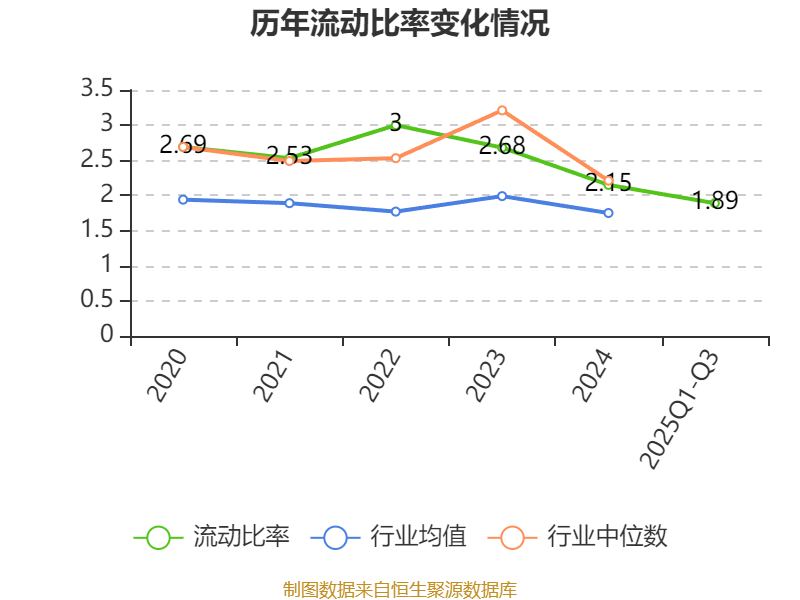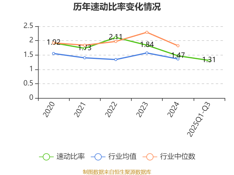 2025年前三季度,公司流动比率为1.89,速动比率为1.31。