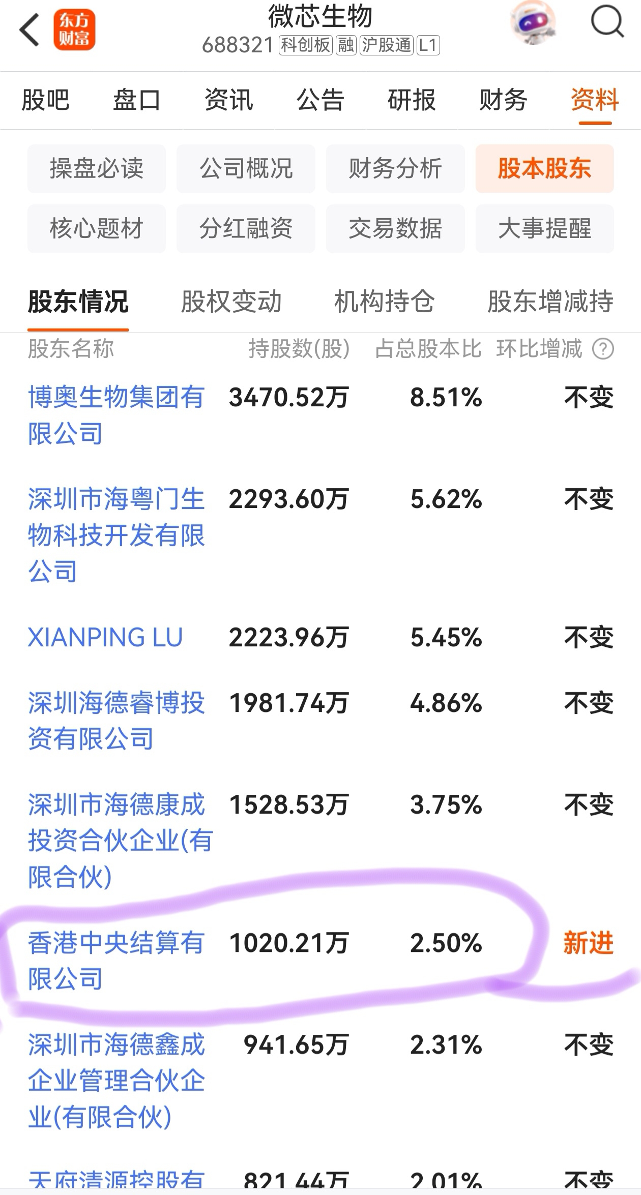 $微芯生物(SH688321)$ 香港中央结算这两个月买了1000多万股还进了是大股东,说明被国际市场认可了!!!并且是长期资金,这就是价值认可!不像国内基金机构,前两个月跑了100多家,只会跟风的水平!