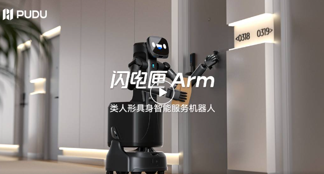 3月31日,普渡机器人发布了全球首款商用场景类人形具身智能服务机器人闪电匣Arm。