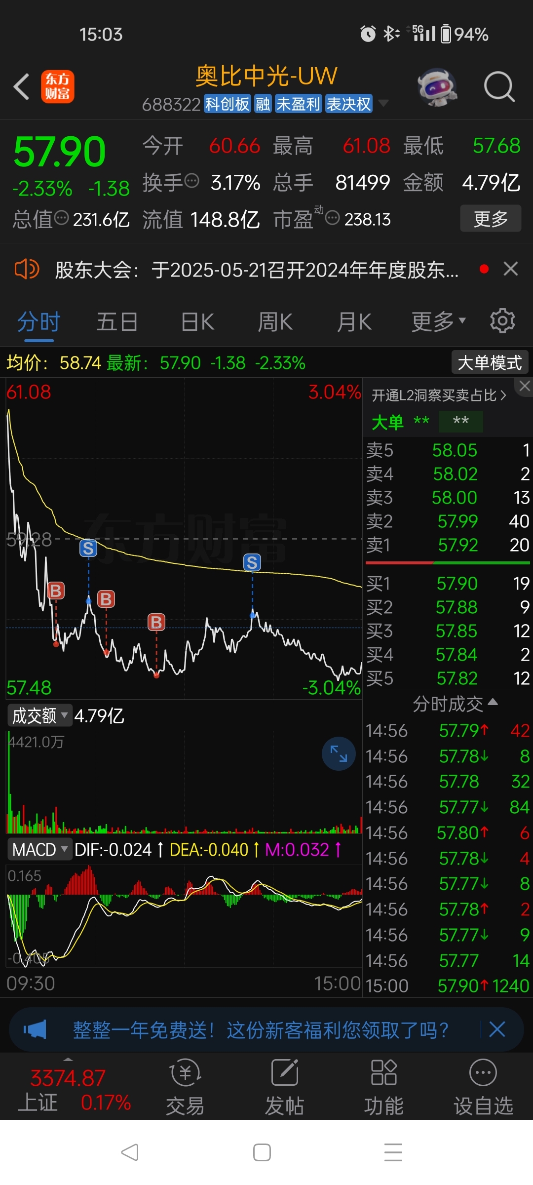 $奥比中光-UW(SH688322)$ 苦中作乐