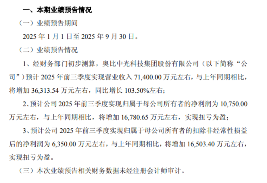奥比前三季度业绩,净利润1.08亿元,直接提前完成全年目标