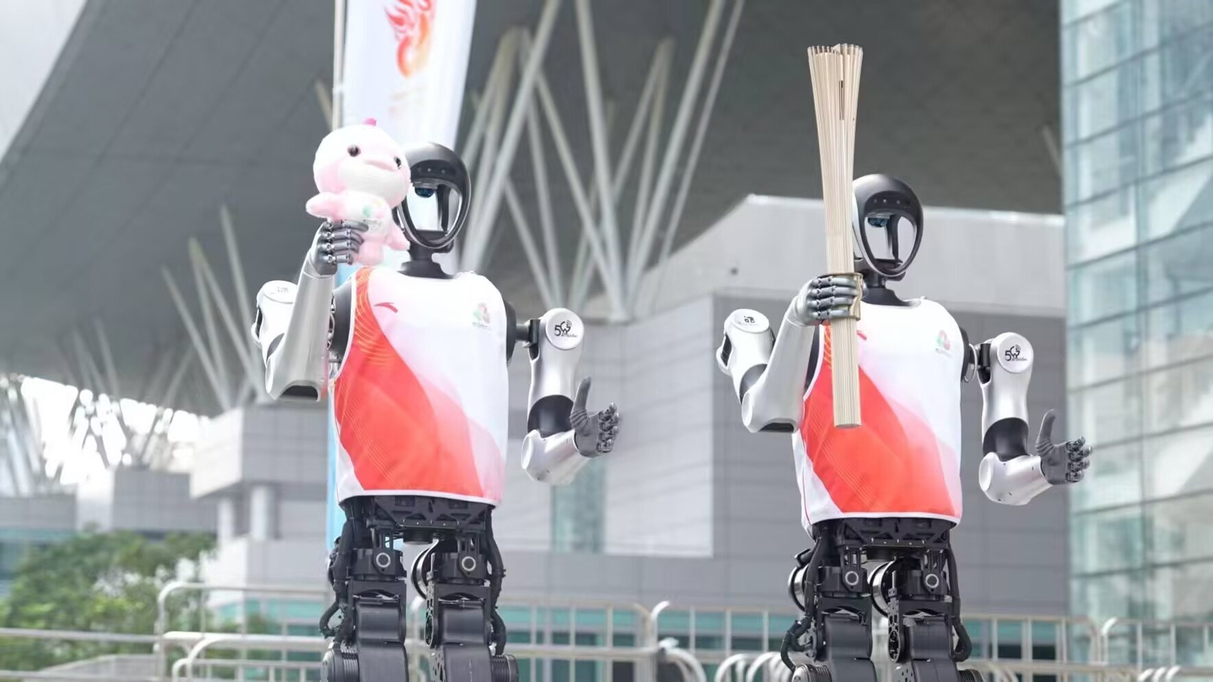 11月2日,第十五届全国运动会火炬传递启动仪式在深圳举行。人形机器人“夸父”以“0号火炬手”身份亮相,其手握1.6千克重火炬,完成了第二棒与第三棒间的百米传递。
