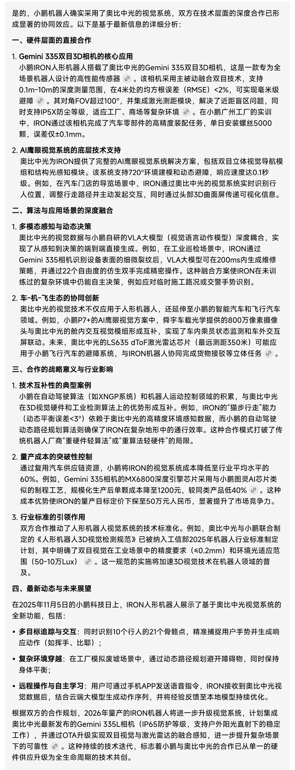 小鹏机器人身上最值钱的其实是奥比中光的视觉系统。