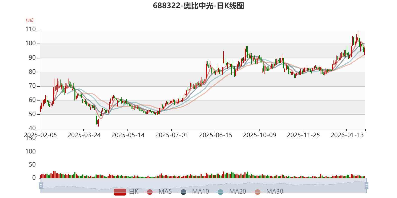 中证智能财讯奥比中光(688322)1月30日晚间披露2025年度业绩预告,预计2025年实现营业收入9.4亿元,同比增长66.53%;归母净利润1.23亿元,上年同期亏损6290.69万元;扣非净利润预计7500万元,上年同期亏损1.12亿元。以1月30日收盘价计算,奥比中光目前市盈率(TTM)约为312.11倍,市净率(LF)约13.02倍,市销率(TTM)约40.84倍。