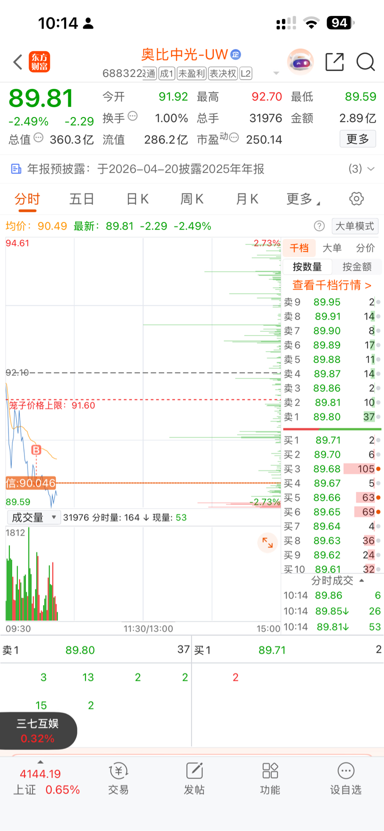 $奥比中光-UW(SH688322)$ 主动买套,下方60日线支撑砸破深不见底,我赌主力不敢为