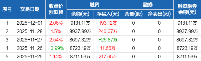 瑞华泰:融资净买入193.12万元,融资余额9131.11万元(12-01)