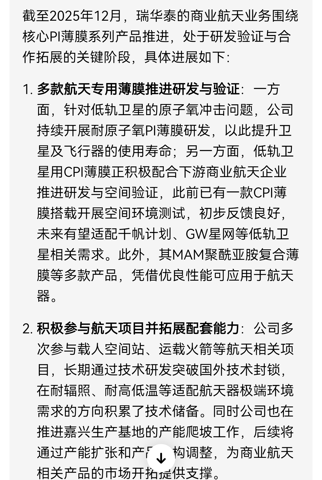 $瑞华泰(SH688323)$ 瑞华泰商业航天材料龙头