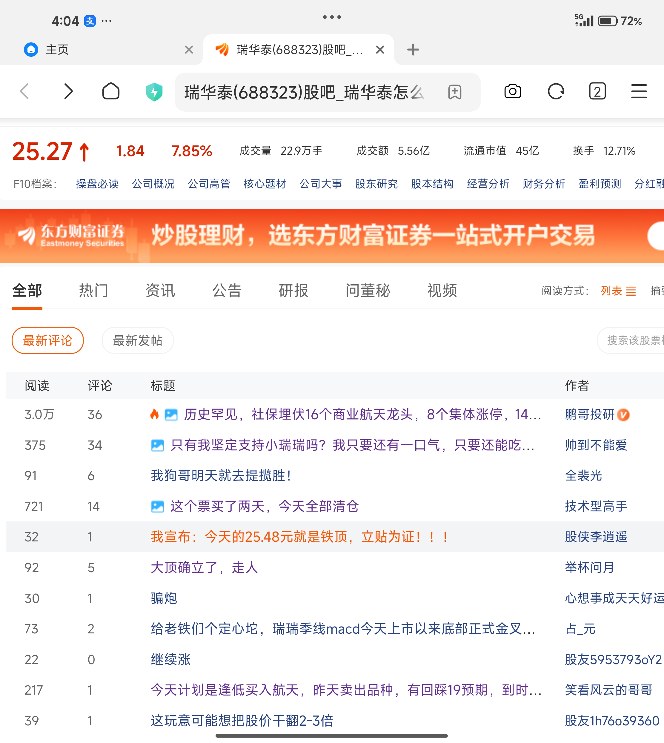 温馨提示: 1.根据《证券法》规定,禁止编造、传播虚假信息或者误导性信息,扰乱证券市场;2.用户在本社区发表的所有资料、言论等仅代表个人观点,与本网站立场无关,不对您构成任何投资建议。用户应基于自己的独立判断,自行决定证券投资并承担相应风险。《东方财富社区管理规定》