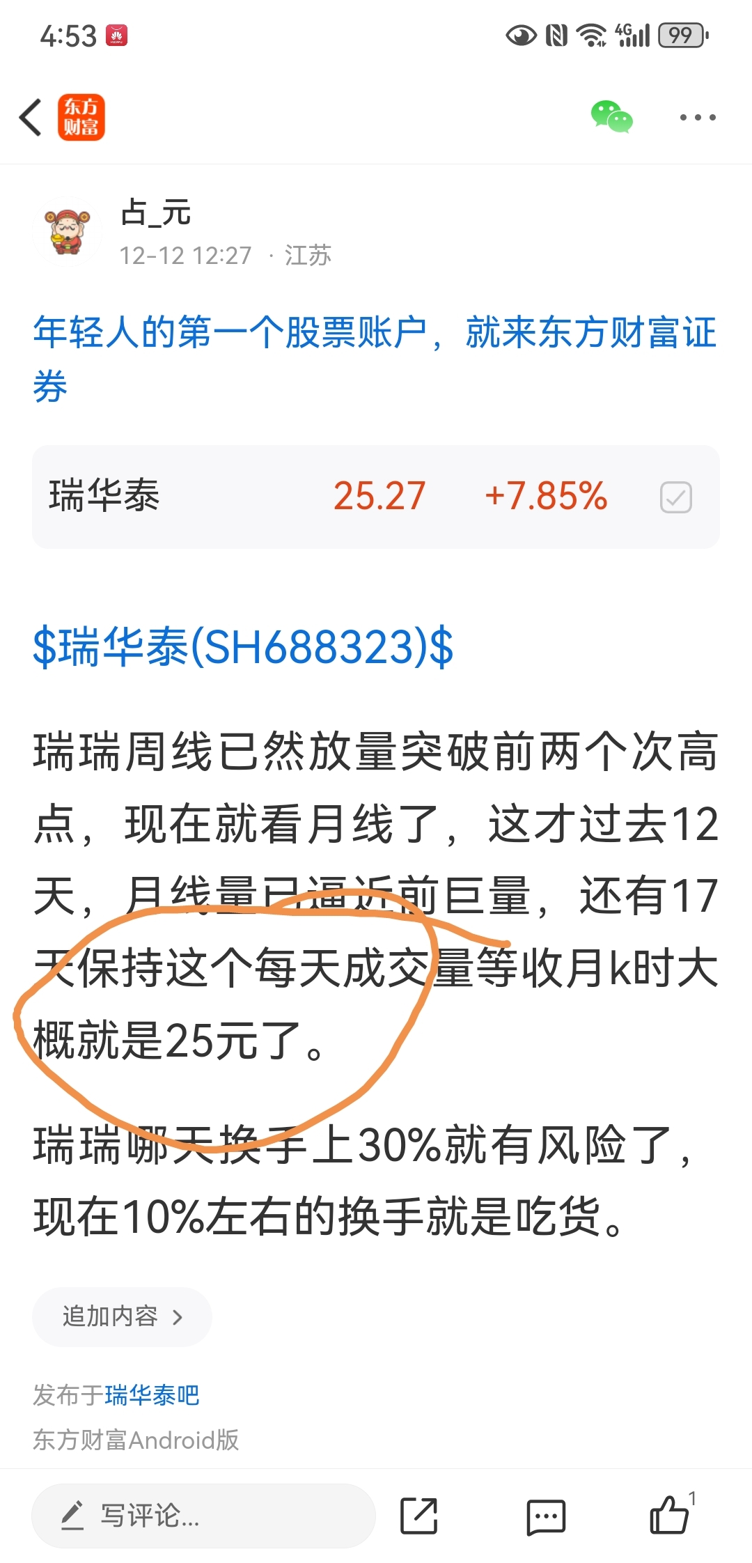 温馨提示: 1.根据《证券法》规定,禁止编造、传播虚假信息或者误导性信息,扰乱证券市场;2.用户在本社区发表的所有资料、言论等仅代表个人观点,与本网站立场无关,不对您构成任何投资建议。用户应基于自己的独立判断,自行决定证券投资并承担相应风险。《东方财富社区管理规定》