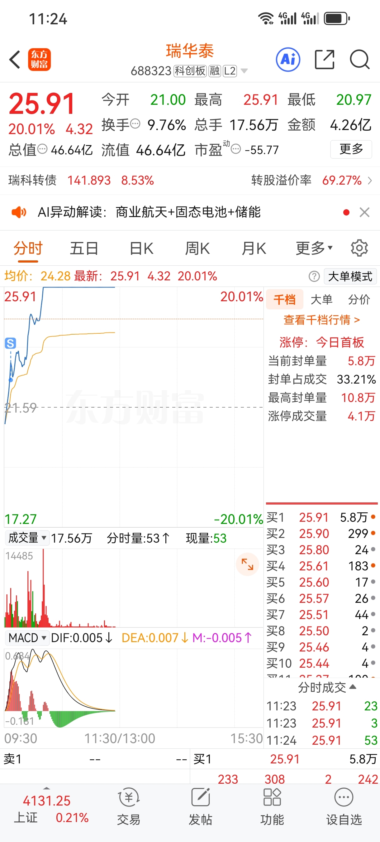 $瑞华泰(SH688323)$ 真是菜5个点就跑了