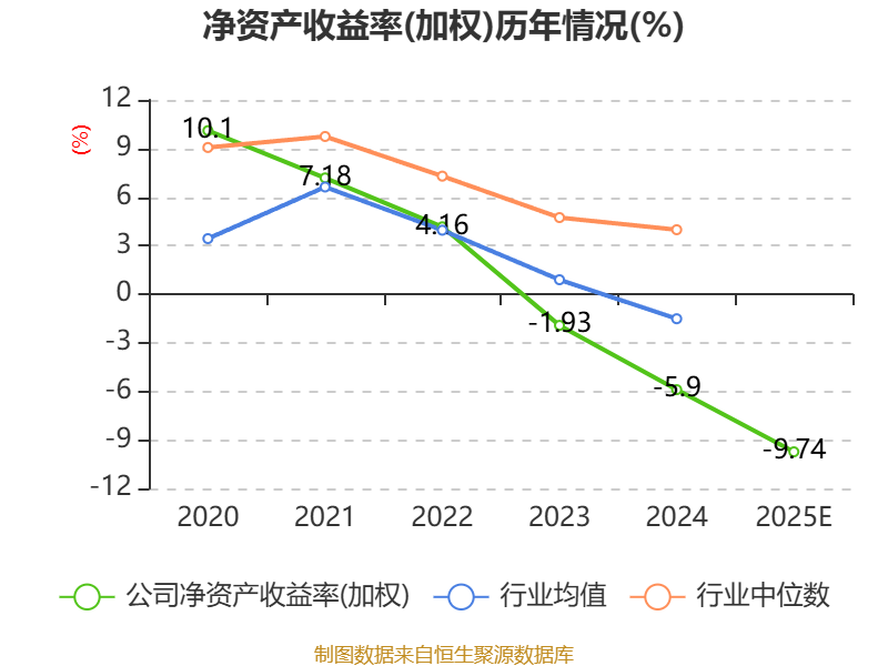 数据显示,2025年公司加权平均净资产收益率为-9.74%,较上年同期下降3.84个百分点。
