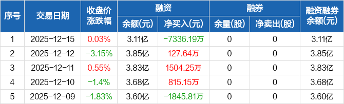 赛微微电:融资净偿还7336.19万元,融资余额3.11亿元(12-15)
