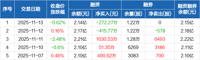 经纬恒润:融资净偿还272.27万元,融资余额2.14亿元(11-13)
