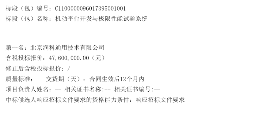 子公司北京通用中标5000万。
