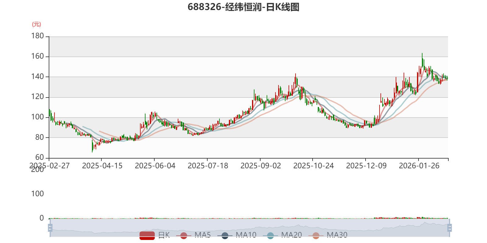 中证智能财讯经纬恒润(688326)2月26日晚间披露2025年业绩快报,公司实现营业收入68.48亿元,同比增长23.59%;归母净利润9953.75万元,同比扭亏;扣非净利润3055.94万元,上年同期亏损;基本每股收益0.88元,加权平均净资产收益率为2.43%。以2月26日收盘价计算,经纬恒润目前市盈率(TTM)约为167.26倍,市净率(LF)约4.21倍,市销率(TTM)约2.58倍。