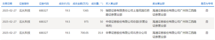 云从科技今日大宗交易折价成交155.9万股,成交额3040.05万元