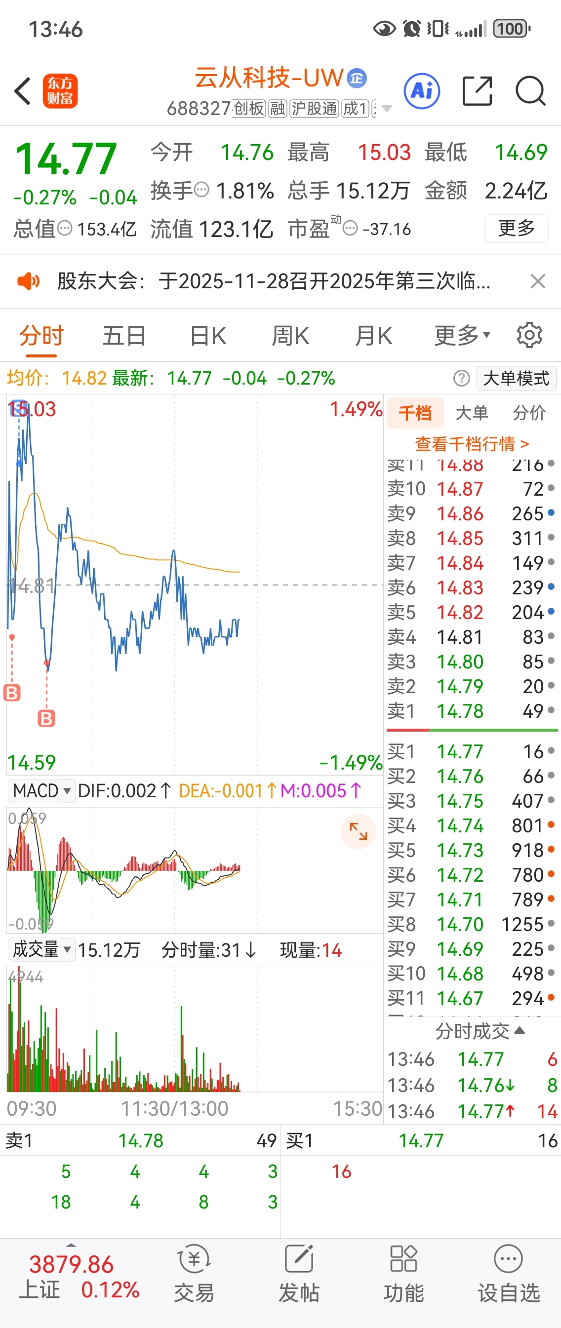 $云从科技-UW(SH688327)$ 早盘刚开始拉升就有灾*跑出来骂!吓得我也顾不上看量能了,赶紧跑了!后来发现其实量能不差的,我还以为灾*不准了,结果……不得不说,骂人的灾*真的威力有点大啊,这么强的量能都能被它骂的跌下来哈哈哈哈~不得不服,希望尾盘灾*再出来骂一会,最好回踩下14.15