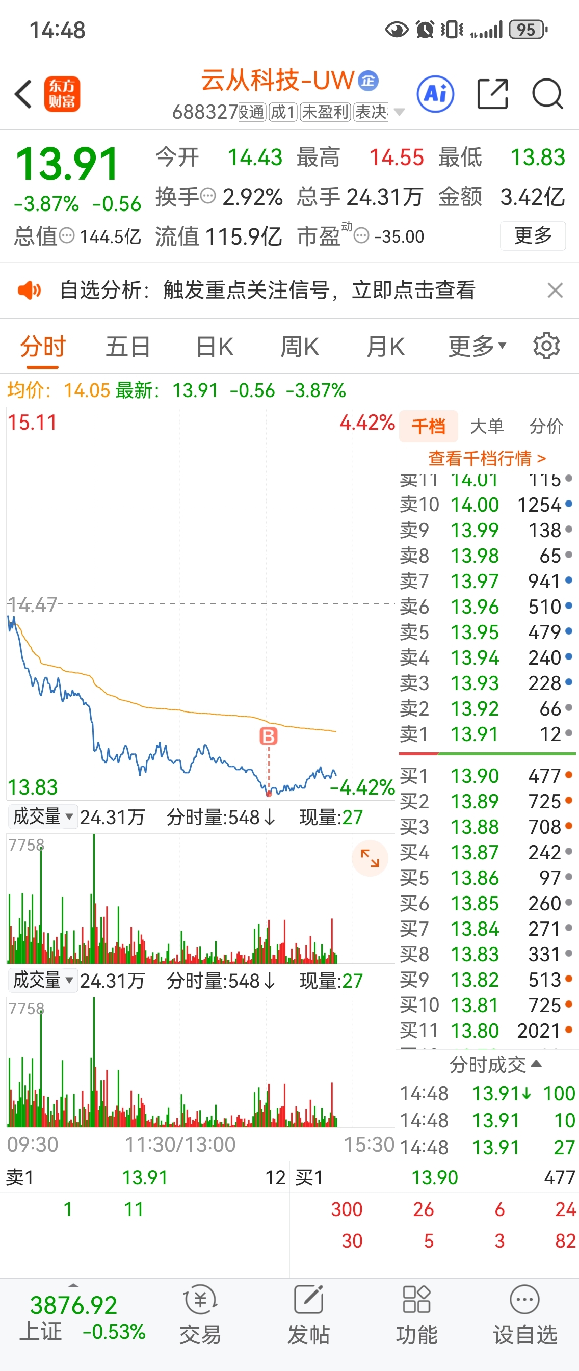 我今天支持云从,两个号都买了些!一定要让我赚钱呀,不然下次跌的时候没有人来支持了呀哈哈哈哈~