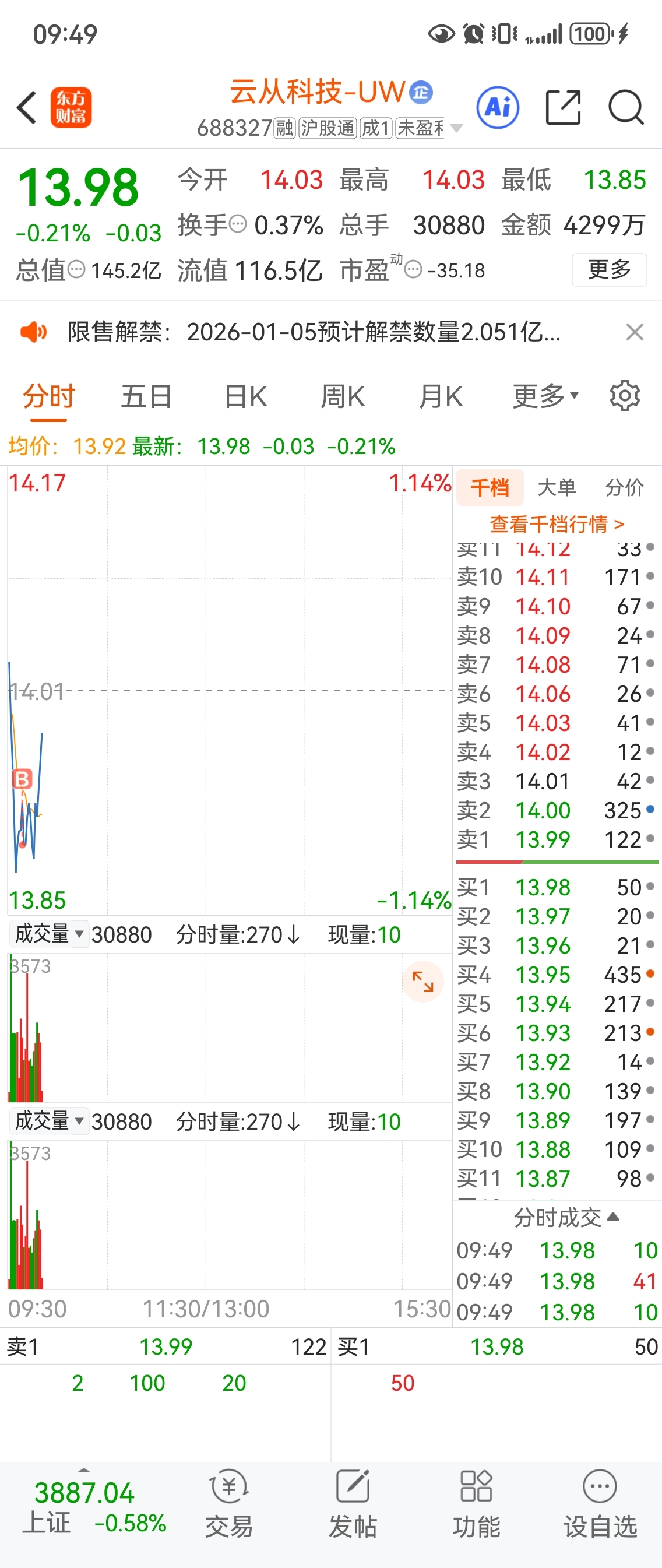 $云从科技-UW(SH688327)$ 既然昨天都买了,那今天就再买点