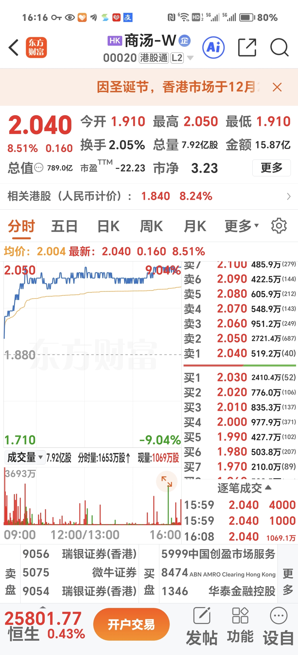 $云从科技-UW(SH688327)$ 你大哥红色8个点,你红色2分
