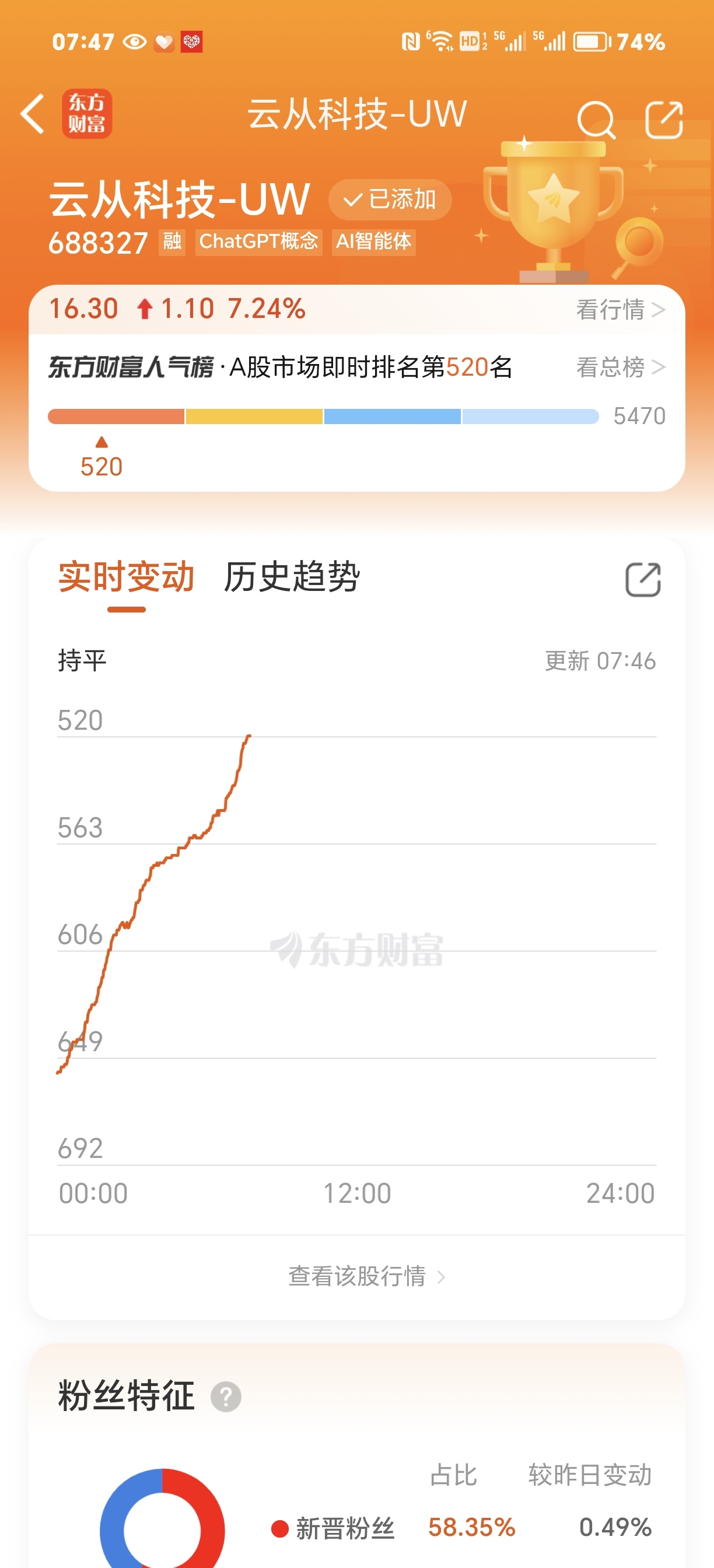 520,多么有爱滴数字,预示着云从科技爱你滴美好日子己经到来,人气急涨,云从的天