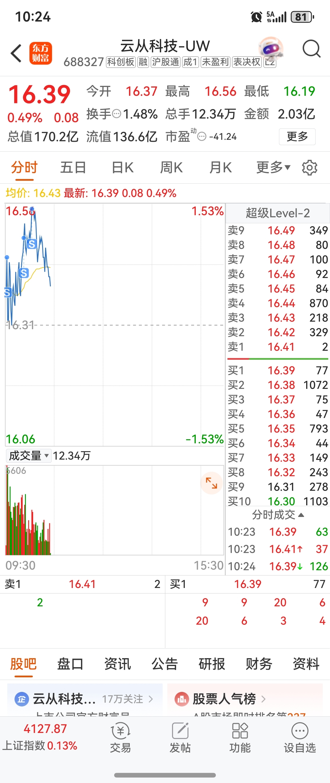 $云从科技-UW(SH688327)$ 大家都说一卖就涨,那为了让小云儿大涨,我就勉为其难得卖了吧