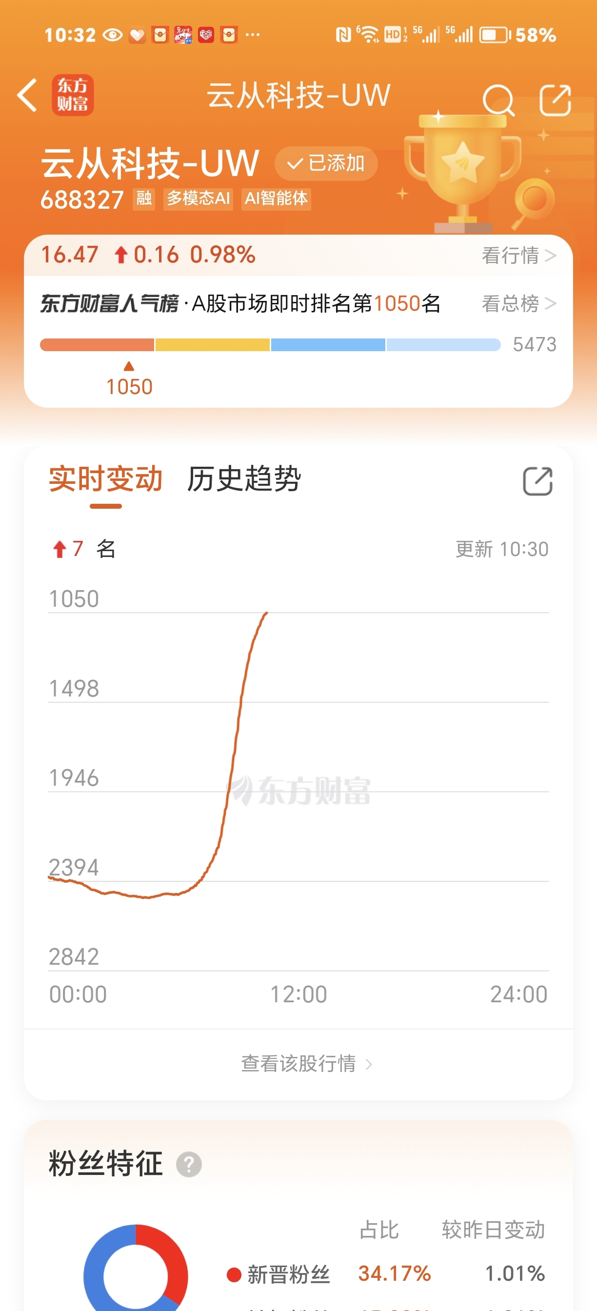 $云从科技-UW(SH688327)$ 啥情况,人气突然大升
