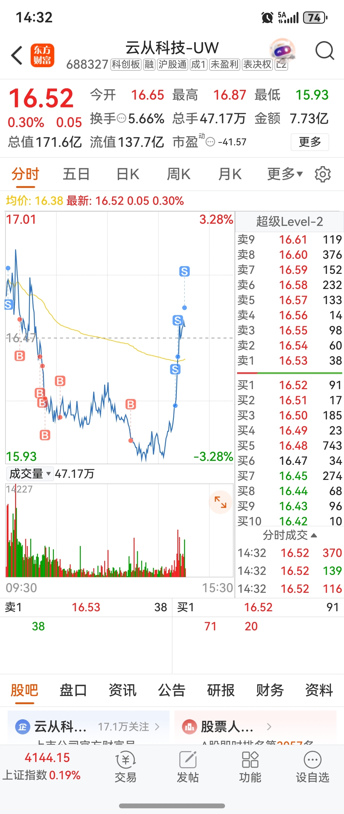 $云从科技-UW(SH688327)$ 笑不活了,周末的时候股吧里有人说不能做T,会给券商贡献手续费!我那时候觉得确实手续费有点成本,但是不能为了卡住券商的手续费就不赚做T的钱呀!这不,我今天又给券商贡献好多手续费