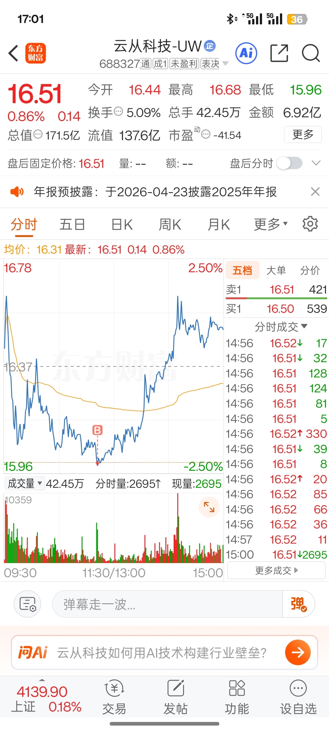 $云从科技-UW(SH688327)$ 今天终于忍不住又进场了
