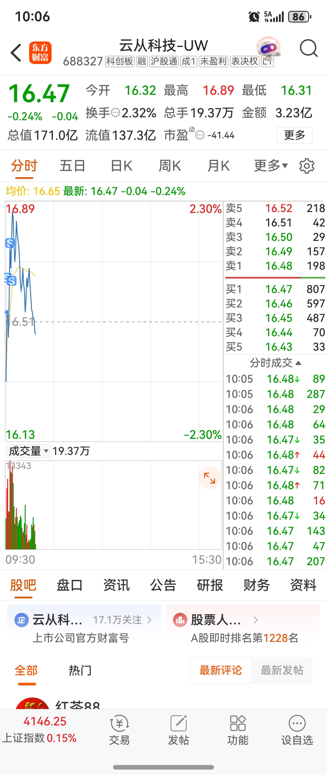 $云从科技-UW(SH688327)$ 很多人脑子不好使还怪别人做T,眼睁睁看着好几个AI冲击涨停失败,不做个T对不起我的智商啊
