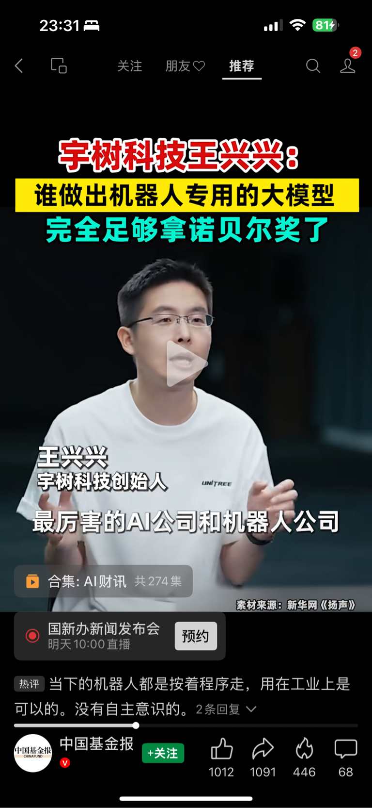 我们余姚人的骄傲……王兴兴董事长说了……谁能做出机器人大模型谁就是舞台之王、周曦