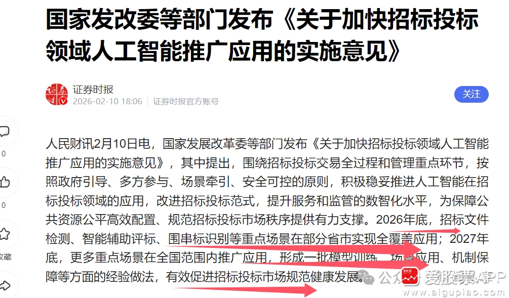 盘后,AI方向重磅文件,发改委等部门发布《关于加快招标投标领域人工智能推广应用的