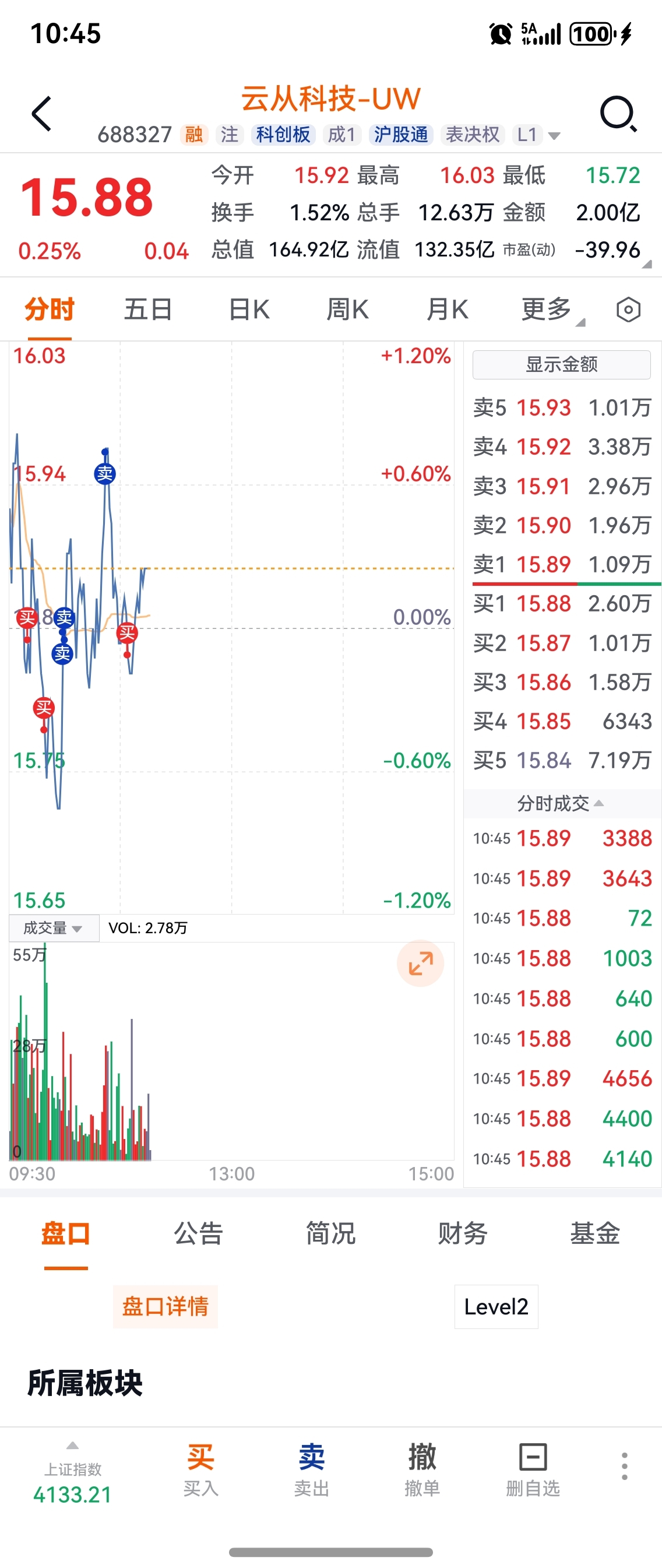 $云从科技-UW(SH688327)$ 云从的成交量太低了,打不出辨识度!大家都加加油,活动活动,增加点成交量!至于小钱钱,赚点也就赚点了,反正就当捡的