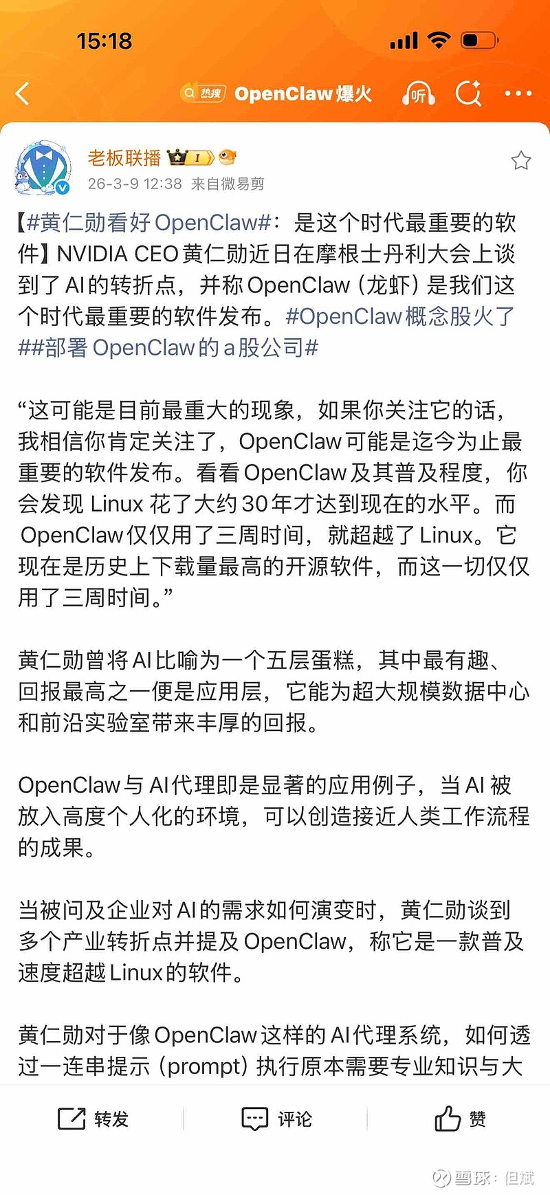 “本周末,‘养龙虾’进入官方两会热议+产业巨头密集跟进+成为民间赚钱的生意,标志着‘养龙虾’火爆出圈,上一个这样被热议的是苏超。”
