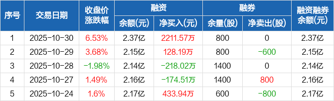 宏力达:融资净买入2211.57万元,融资余额2.37亿元(10-30)