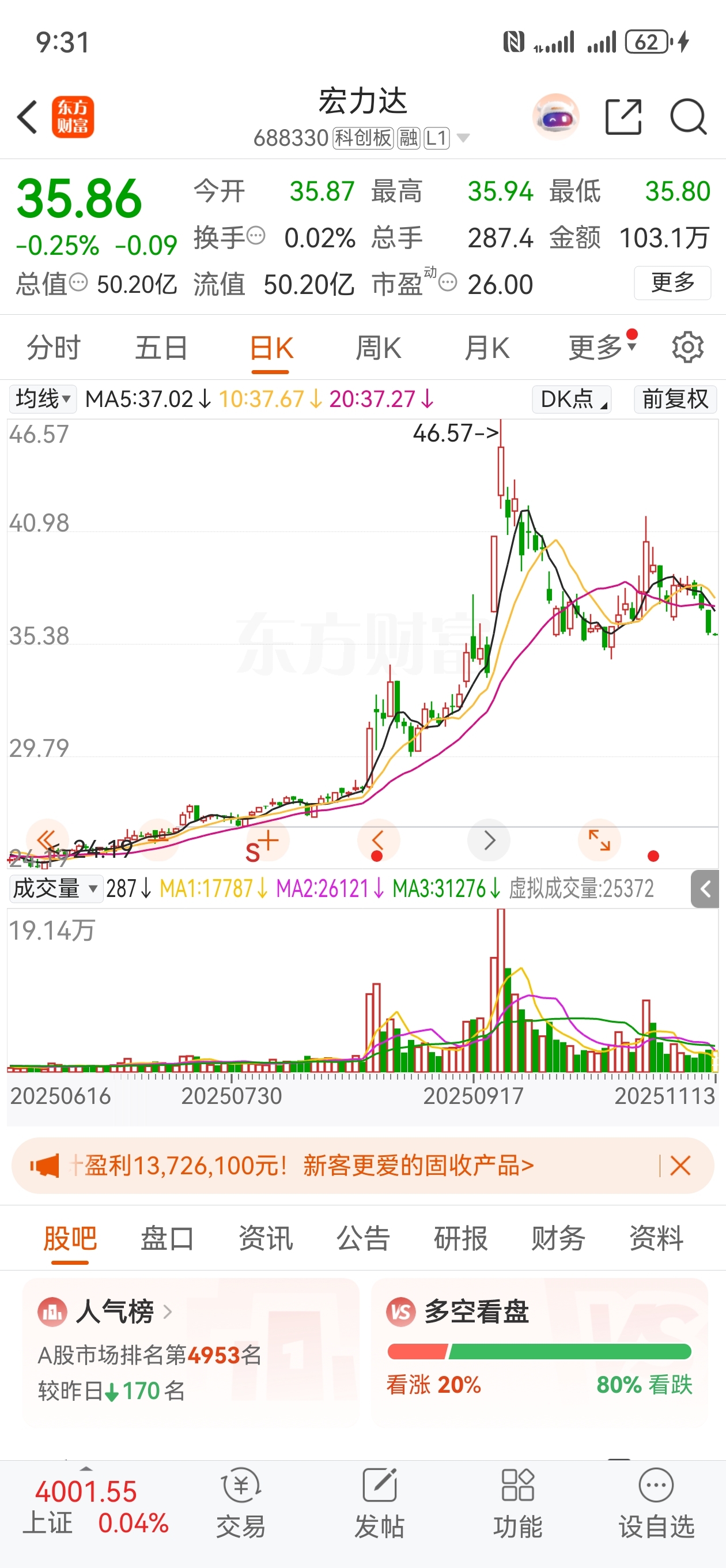 科创50走势和宏力达,和而泰一模一样,大家都在等魔王上市。又是一个新的起点。