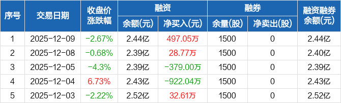 宏力达:融资净买入497.05万元,融资余额2.44亿元(12-09)