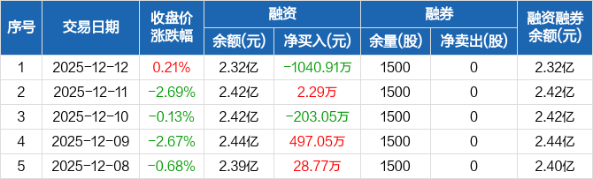宏力达:融资净偿还1040.91万元,融资余额2.32亿元(12-12)