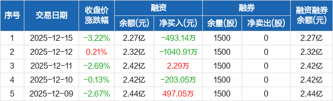 宏力达:融资净偿还493.14万元,融资余额2.27亿元(12-15)