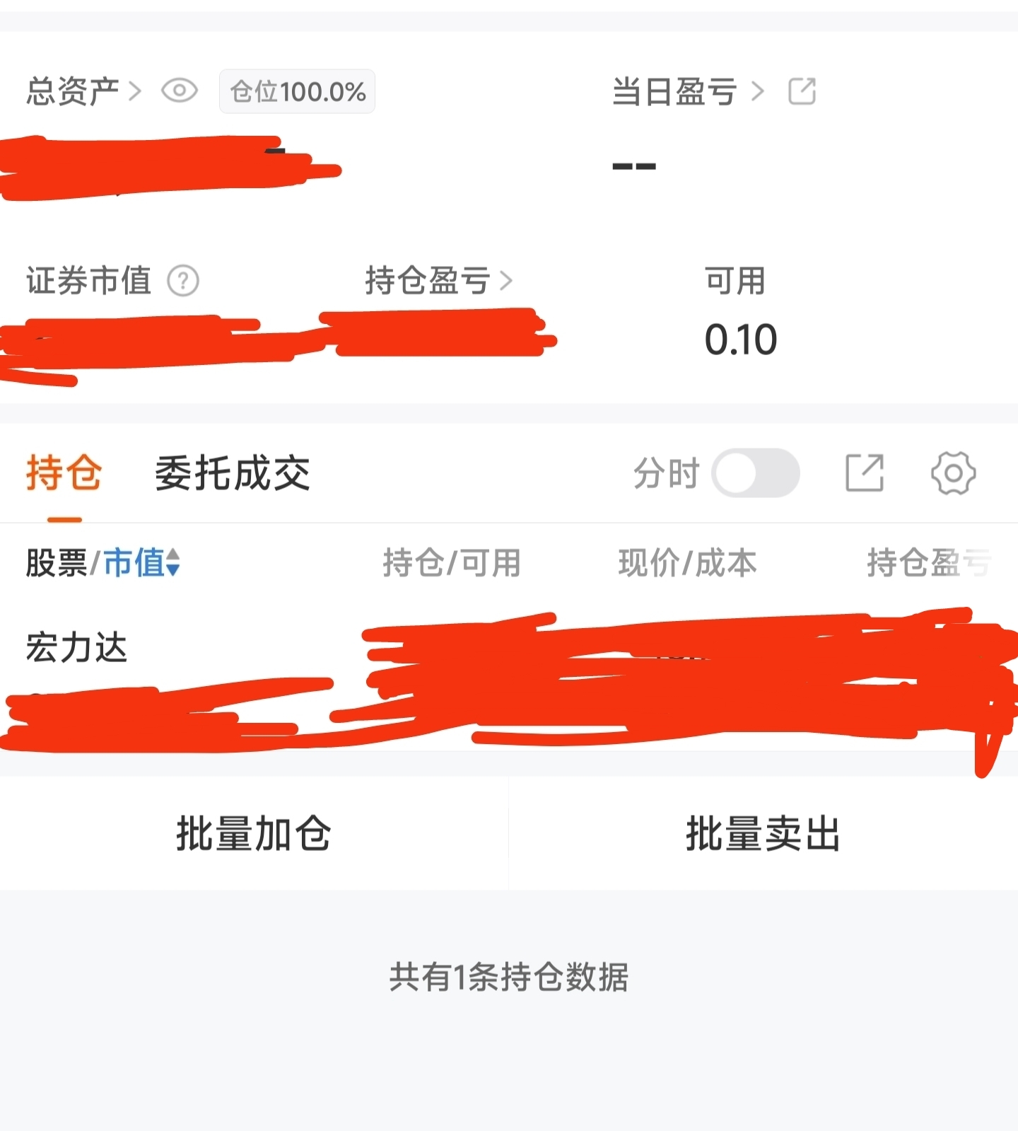 我就全仓宏力达一只股,帐号余额0.10元,买入删除自选股不看它几个月。