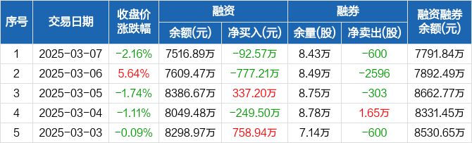 荣昌生物:融资净偿还92.57万元,融资余额7516.89万元(03-07)