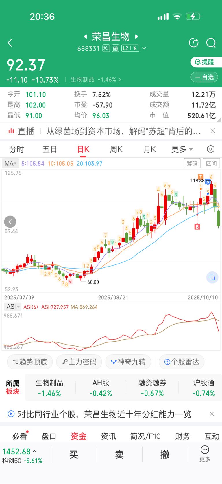 $荣昌生物(SH688331)$ 共计赚了300块,回头看,我去,跌了这么多。