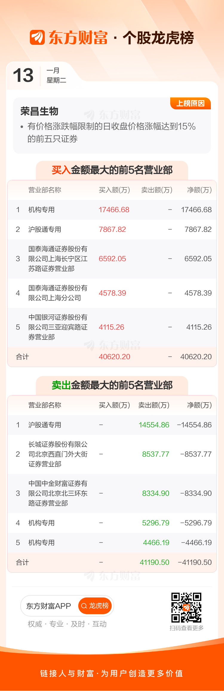 荣昌生物(688331)龙虎榜数据(01-13)