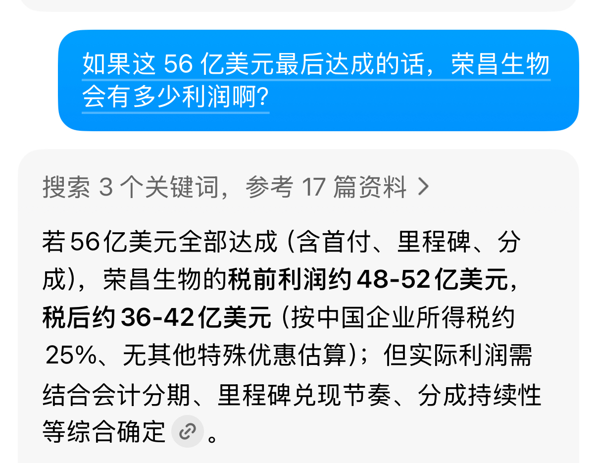 $荣昌生物(SH688331)$ 真的假的?利润这么高?就算分几年也很厉害吧!这56亿美元还不含大中华区,荣昌自己保留大中华区的销售权,这药这么牛逼吗?有没有专业的人解答一下?谢谢