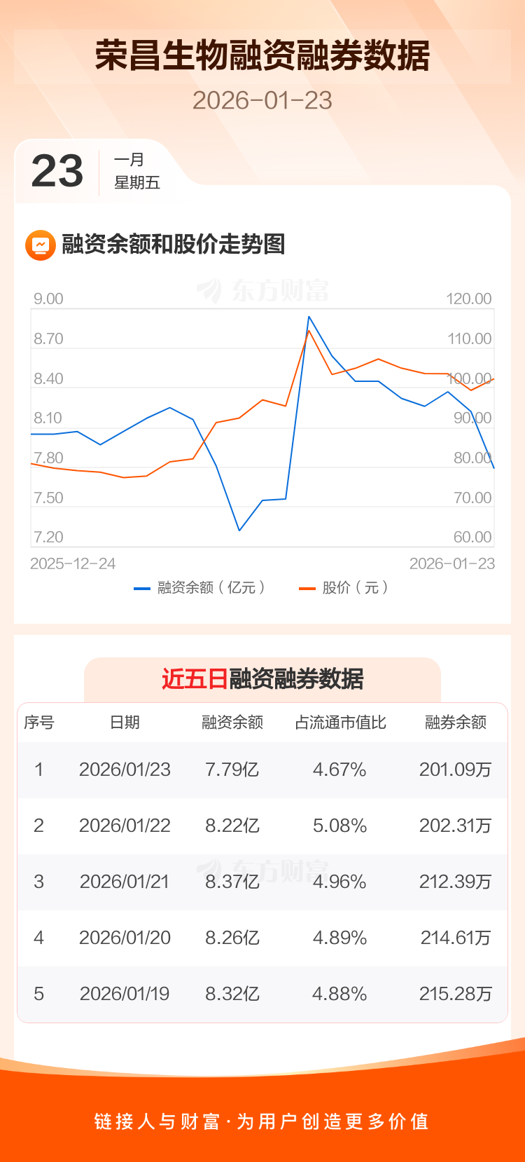 交易所最新数据显示,荣昌生物于2026年1月23日获融资买入6250.56万元,融资偿还1.06亿元,当日融资净偿还4353.08万元。目前,该股融资余额7.79亿,占流通市值比例为4.67%。
