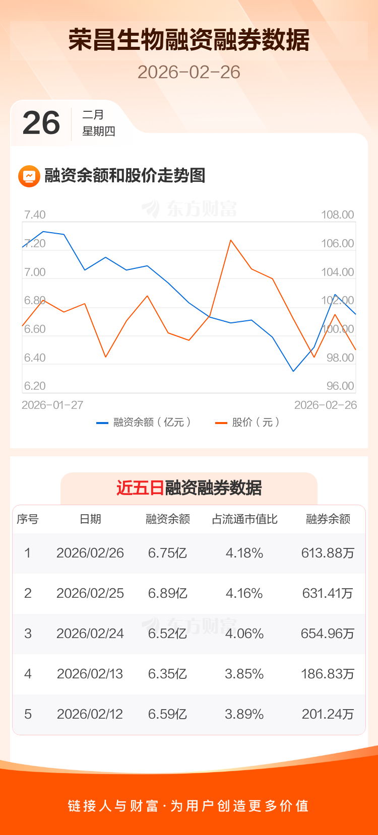 交易所最新数据显示,荣昌生物于2026年2月26日获融资买入3530.40万元,融资偿还4899.12万元,当日融资净偿还1368.72万元。目前,该股融资余额6.75亿,占流通市值比例为4.18%。