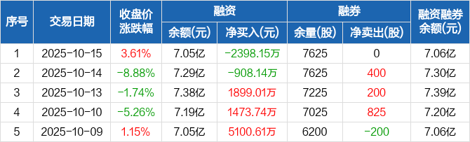 中科蓝讯:融资净偿还2398.15万元,融资余额7.05亿元(10-15)