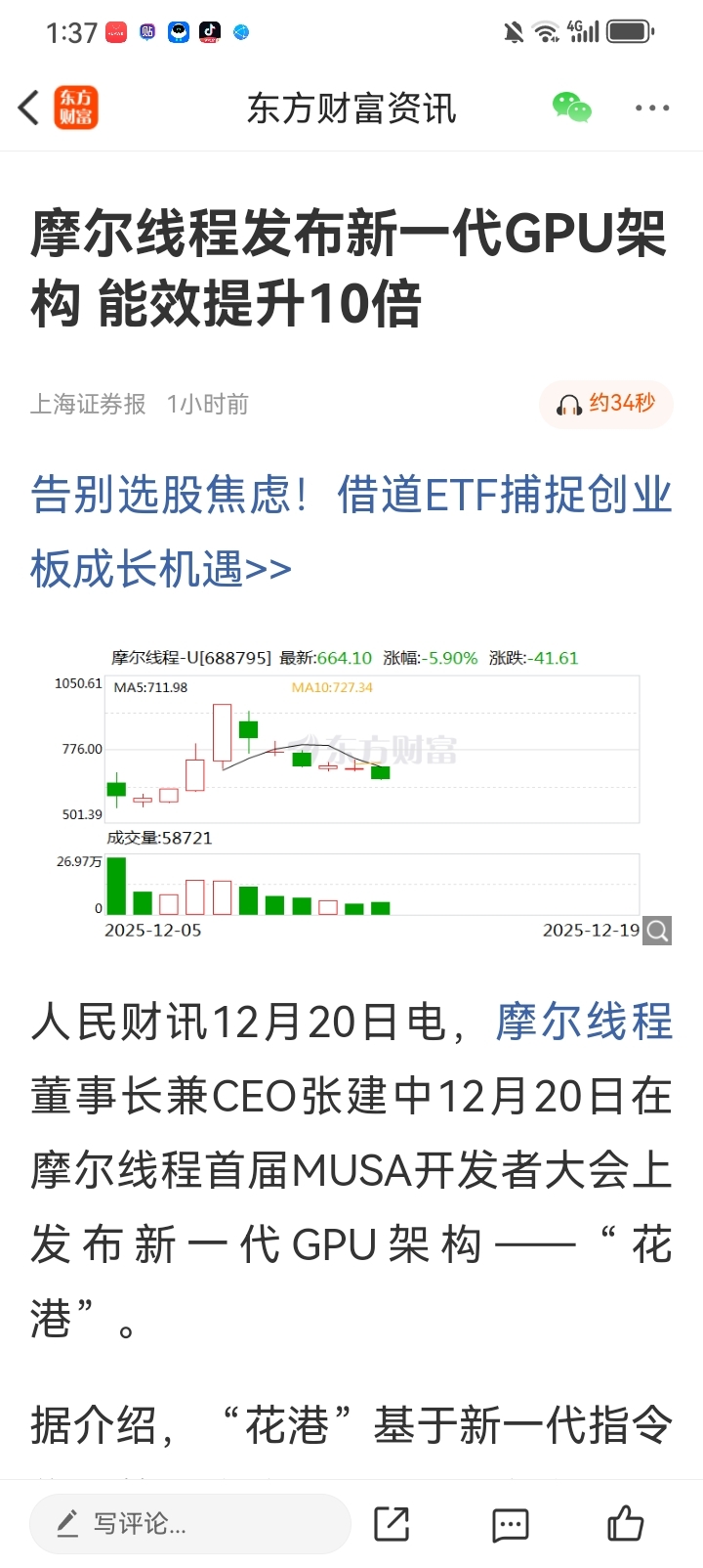 摩尔线程周末放大招了,中科大兄弟,你作为摩尔的干爹之一,下周一能不能也跟着沾沾光