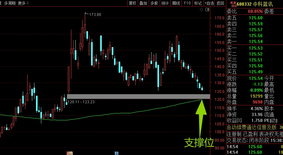 $中科蓝讯(SH688332)$ 近期趋势比较弱,高位连续回落下来后,这里重点盯着脚底大均线的支撑,能稳住就好说,稳不住就的继续杀跌回落了,但不管能否支撑得住,前期冲高没能继续新高,开始回落的时候就需要控制仓位应对了,而不是等到现在才考虑。#炒股日记# #周末杂谈#
